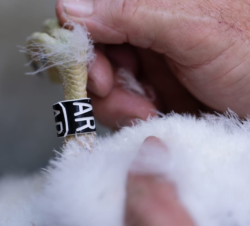 So this evening at the Cathedral after evensong our two little Girls were ringed all went well and they are two very healthy baby girls . Dad came in fairly quickly afterwards to check that all was ok . There will be more pictures tomorrow but for now two pictures thanks to Graham Roberts.