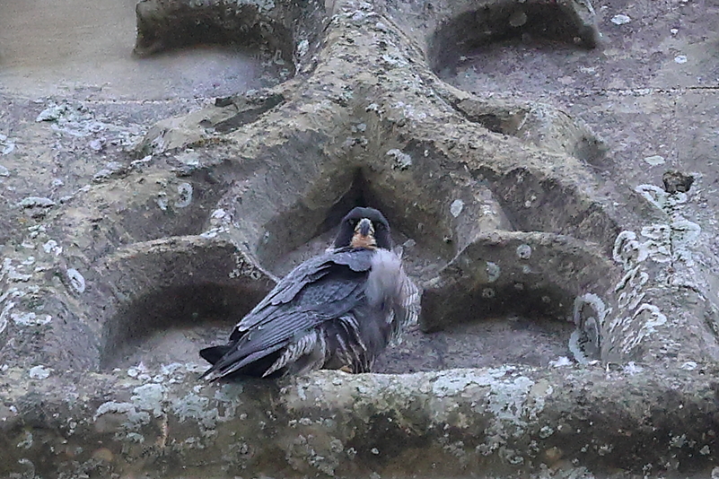 Mum today at the Cathedral both birds were on view for a fair time at the Cathedral today we would have love to of seen a little bit more time spent on the nest …,there was a time the egg was left unattended for longer than we would of liked …..time will tell ….open days continue tomorrow….!!